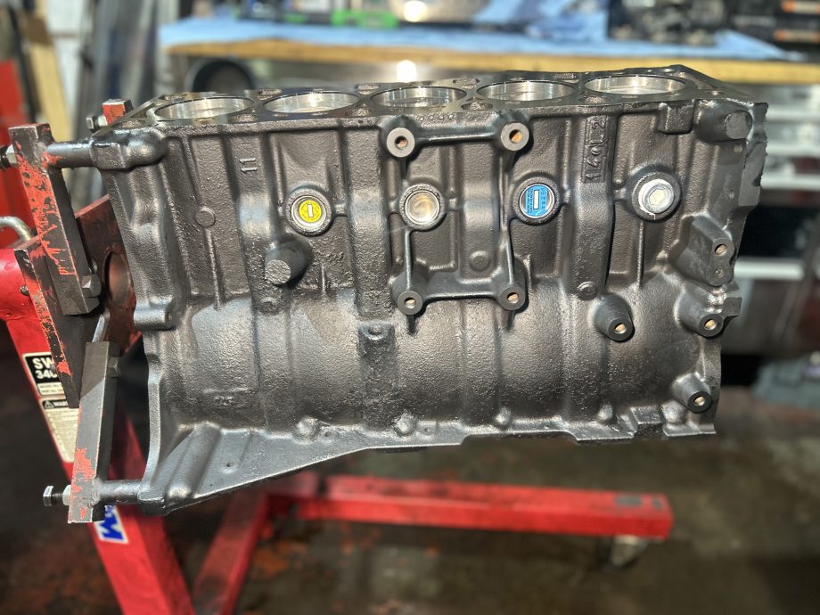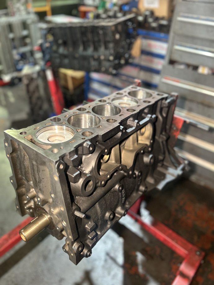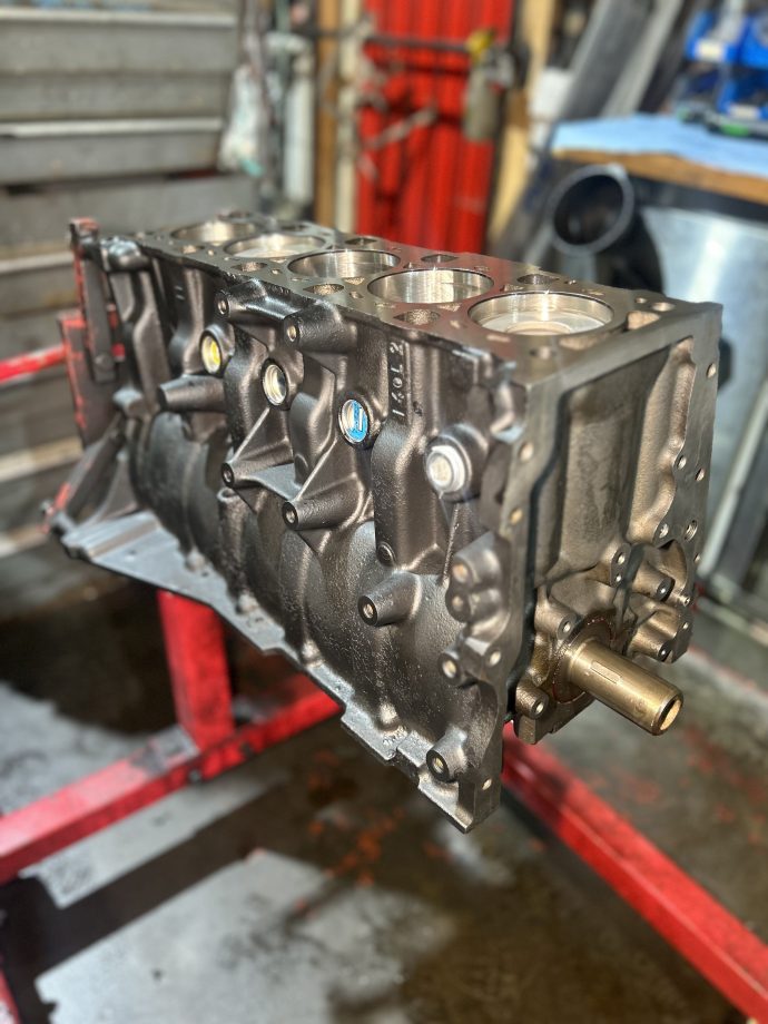 All machining is done in house. The block is bored/honed as necessary and decked flat, the crankshaft is ground/polished as necessary. We fit new small-end bushes to the con rods and assemble with OEM pistons and King big end + main bearings. We also fit an OEM rear oil seal.